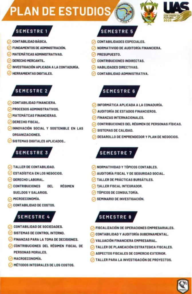 La licenciatura en Contaduría Pública de la Escuela de Ciencias Económicas y Administrativas de la UAS, tiene la tarea de formar profesionales e investigadores capaces y de prestigio en las áreas contables y administrativas, para que se integren al desarrollo económico y social de nuestro entorno, comprometidos en abatir los rezagos sociales.